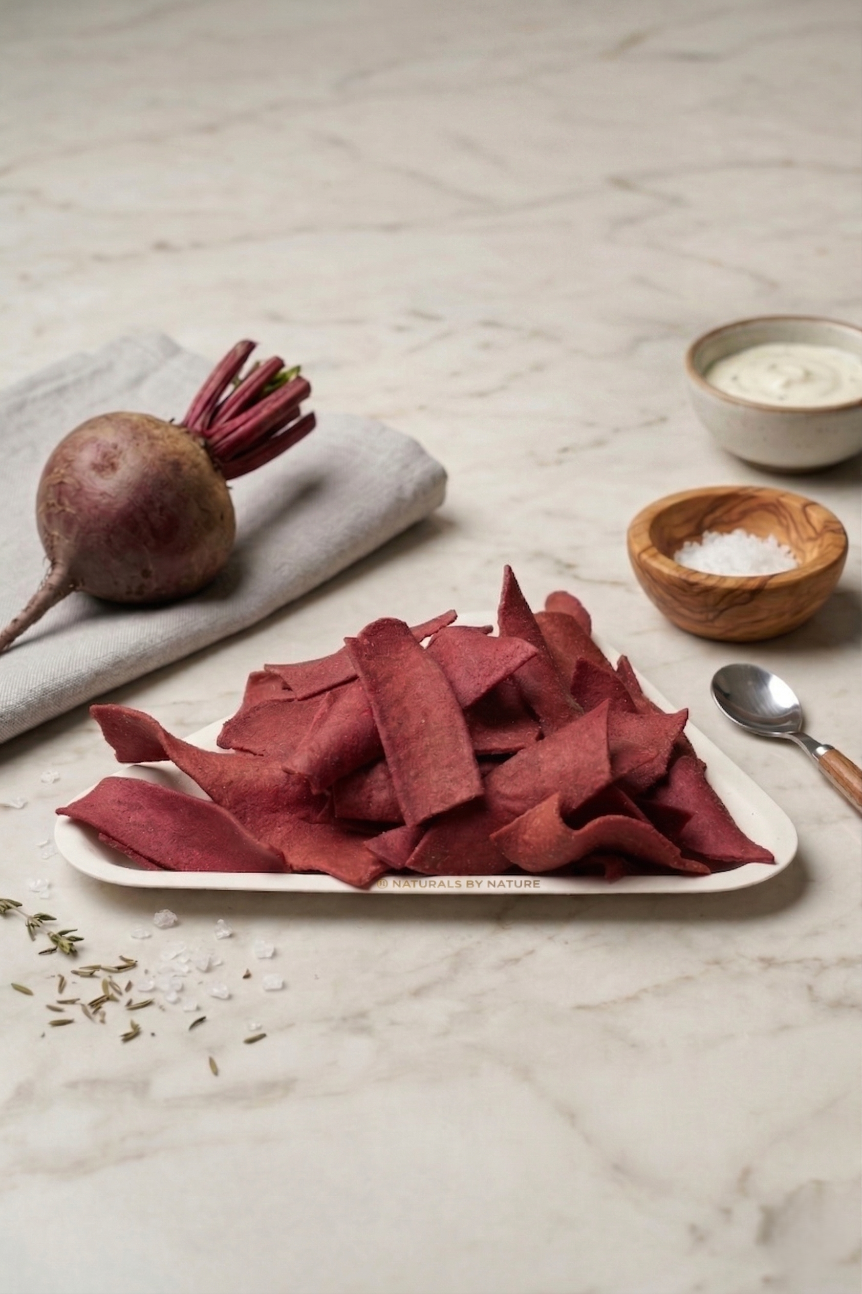 Our Beetroot Chips are crafted using rice flour and gram flour, infused with real beetroot juice. Crispy, light, and naturally vibrant in colour. Balanced seasoning enhances the earthy beetroot flavour. A deliciously crunchy snack with a wholesome twist. Perfect for guilt-free snacking anytime.